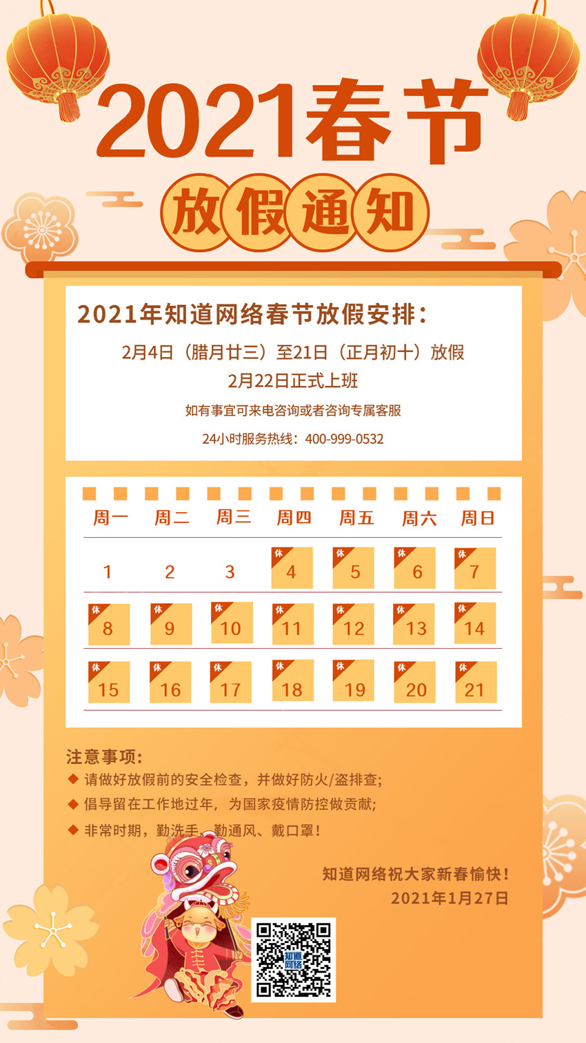 【知道網(wǎng)絡(luò)】春節(jié)放假通知