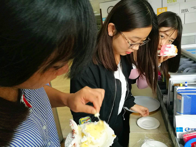 不過我們壽星是個健身達人,蛋糕的誘惑不足以打動我們的大帥哥,再看看我們公司的美女們,已經(jīng)顧不上是否會發(fā)福了,先吃了再減肥是絕對的不二選擇?。?nbsp;