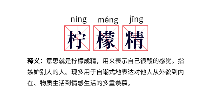 后來(lái)在網(wǎng)絡(luò)環(huán)境中,網(wǎng)友們遇見自己羨慕嫉妒的對(duì)象,往往也會(huì)自己調(diào)侃,“我檸檬了”“我酸了”。
