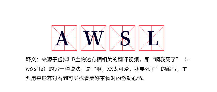 重點(diǎn)筆記:這個(gè)詞最早起源于YouTube上面一個(gè)叫白上吹雪的博主,因?yàn)榭蓯厶鹈赖男蜗蠓劢z在白上吹雪的視頻和直播中大規(guī)模刷起了“awsl”的彈幕。