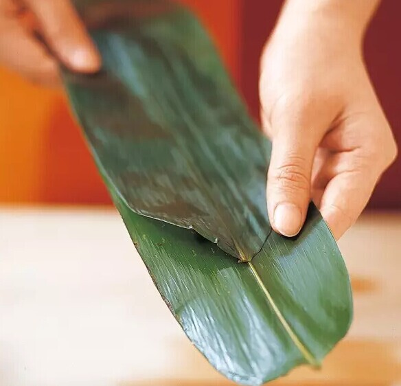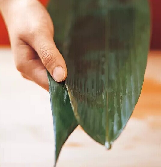如果沒有鮮品,干葉也可以,不過香味就略遜一籌。將曬干的粽葉,買回來放在溫水里泡,用刷子把葉子的兩邊都刷一遍,再過涼水,反復(fù)數(shù)次,粽葉才算洗干凈,放在水里一直泡到要用時拿起來,攤平,稍稍晾干。用不完的粽葉可以曬干保存。