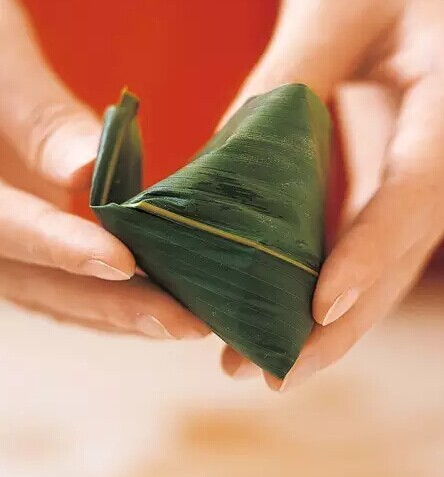 ?用繩子環(huán)繞粽子兩角數(shù)圈,將粽子緊緊裹住,并在頂端扎緊打結(jié)。(此步驟非常重要,如果繩子捆得不夠結(jié)實(shí),在煮制過程中粽葉會有松開的可能,這樣就前功盡棄了)
