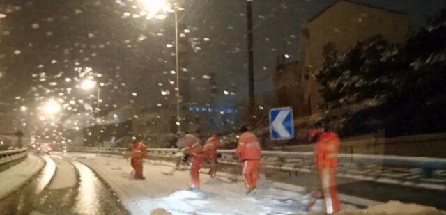 還有部分工人深夜打掃積雪,你們都是可敬可愛的人?。⌒量嗄銈?!