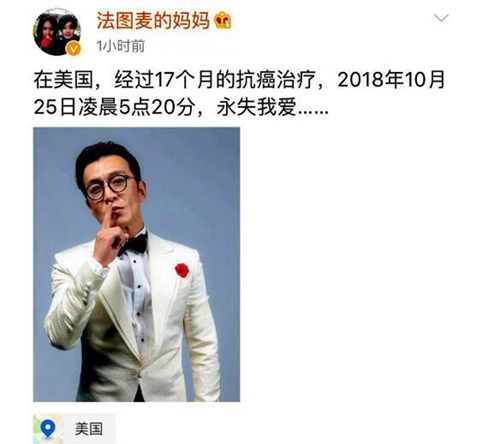 經(jīng)過17個月的抗癌治療,50歲的李詠于2018年10月25日在美國離開了人間。妻子哈文四天后在微博發(fā)布了去世消息,“凌晨5點20分,永失我愛……”