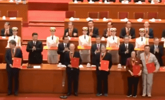 改革開(kāi)放40周年大會(huì)上,黨和國(guó)家領(lǐng)導(dǎo)人集體轉(zhuǎn)身,向“改革先鋒”稱號(hào)獲得者和“中國(guó)改革友誼獎(jiǎng)?wù)?rdquo;獲得者表示祝賀。