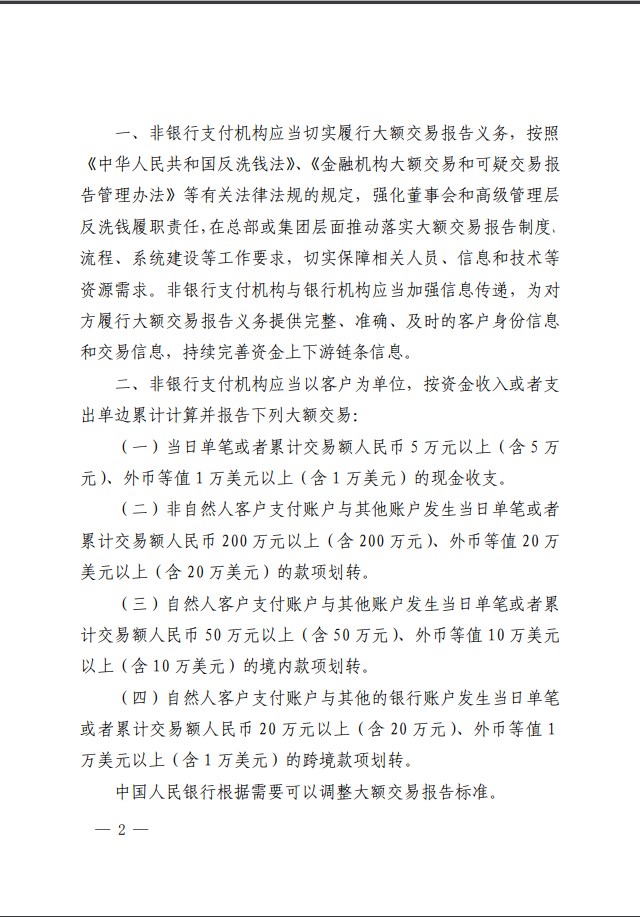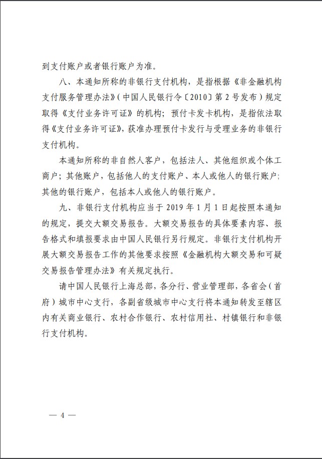 央行關(guān)于非銀行支付機(jī)構(gòu)開展大額交易的通知