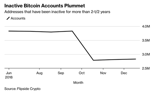 北京時間1月14日,對于比特幣來說,這要么是非常好的消息,要么是非常壞的消息。在這種開創(chuàng)性的加密貨幣上周崩潰之后,彭博社報道稱,隨著最近幾周數(shù)十個比特幣錢包如雨后春筍般涌現(xiàn),加密技術(shù)的一項(xiàng)有希望的發(fā)展可能意味著市場將迎來一波出售(或購買)浪潮。根據(jù)Flipside Crypto提供的數(shù)據(jù),不活躍賬戶數(shù)量大幅下降。
