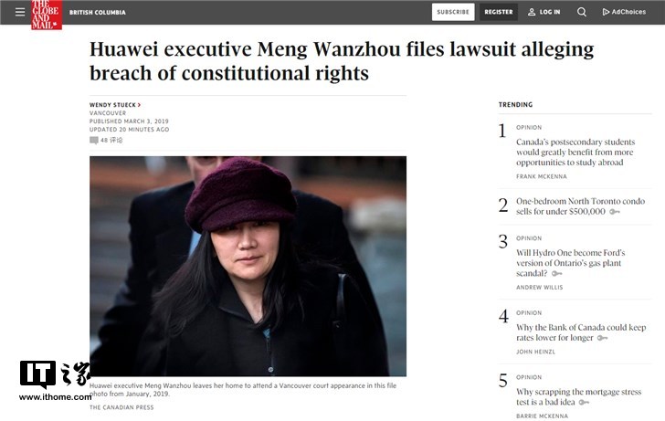 華為CFO孟晚舟的律師對(duì)加拿大政府提起訴訟