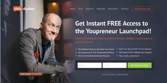 好的圖片對(duì)于主頁設(shè)計(jì)來說至關(guān)重要。我就在自己的博客主頁上添加了一張長(zhǎng)圖片,這張圖片讓我的博客顯得更加與眾不同,上面所提到的所有網(wǎng)站也都非常擅長(zhǎng)利用圖片來吸引讀者。特別是Chris Ducker(上面第二個(gè)案例),他是圖片使用方面的專家,他將自己的照片放在網(wǎng)站主頁上,照片中他的目光注視著網(wǎng)頁上的信息欄和CTA,意在表示自己希望大家能夠響應(yīng),用戶往往會(huì)受到圖片的暗示,注意力順著他的目光看向右邊,然后進(jìn)行相應(yīng)的動(dòng)作,最終完成轉(zhuǎn)化。