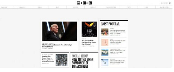 突出品牌的方式有很多,內(nèi)容是其中很重要的部分,同時(shí)視覺和體驗(yàn)也不容忽略。比如在技術(shù)類數(shù)字雜志中極為出名的 Wired ,也就是《連線》雜志。獨(dú)樹一幟的 LOGO,黑白分明的配色融入整個(gè)數(shù)字雜志的網(wǎng)站設(shè)計(jì),和 LOGO 以及品牌本身遙相呼應(yīng)。